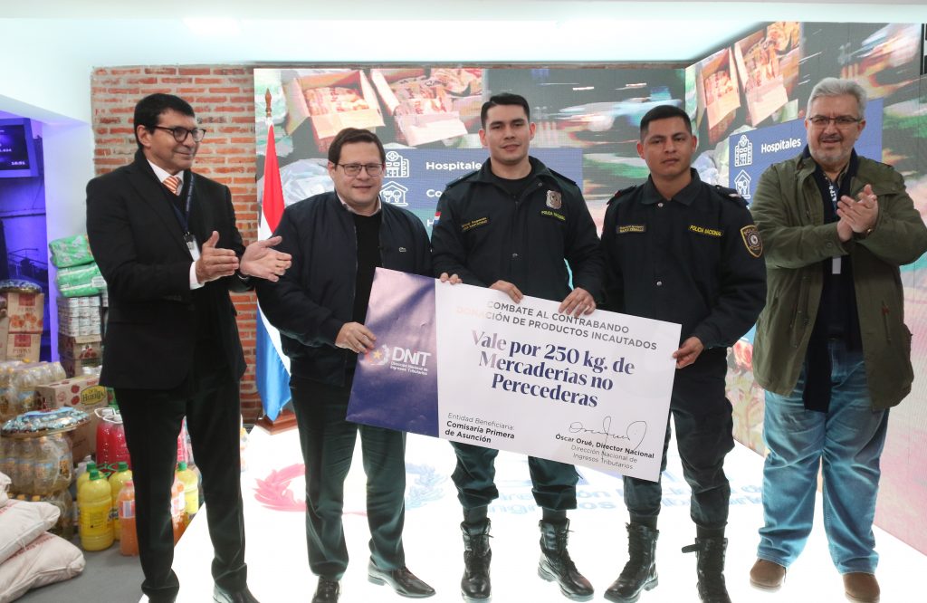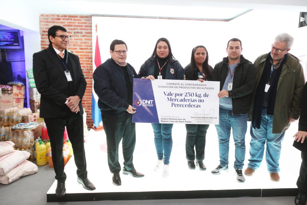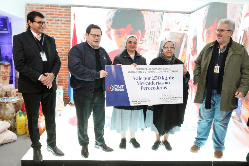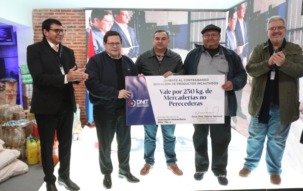 La Dirección Nacional de Ingresos Tributarios (DNIT) entregó unos 2500 kg de alimentos no perecederos en concepto de donaciones, desde su stand en la Expo de Mariano Roque Alonso. Estos productos fueron incautados durante varios operativos en el marco de la lucha contra el contrabando que lleva adelante la institución.