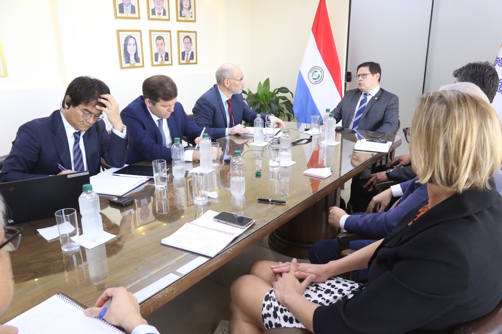 El director nacional de la DNIT, Óscar Orué, en reunión con representantes del Fondo Monetario Internacional