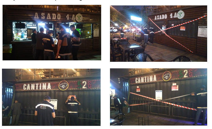 Conforme lo dictado en las ordenes emanadas de los juzgados competentes, los locales cerraron sus puertas al público por tres días. El mandamiento judicial faculta al Departamento Jeroviaha, dependiente de la Subsecretaría de Estado de Tributación, a suspender las actividades comerciales de los establecimientos, habilitando además los días y horas inhábiles para el diligenciamiento de la orden.