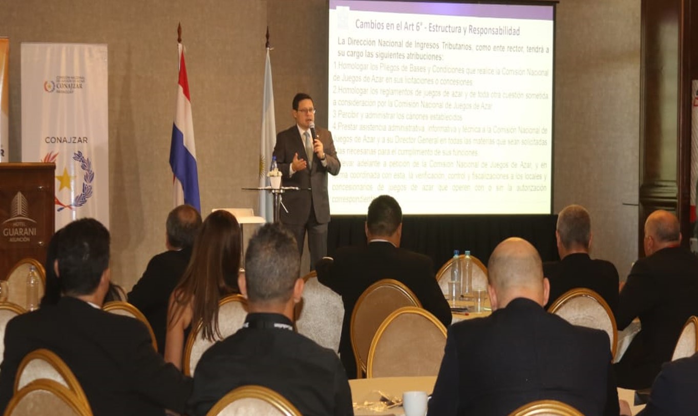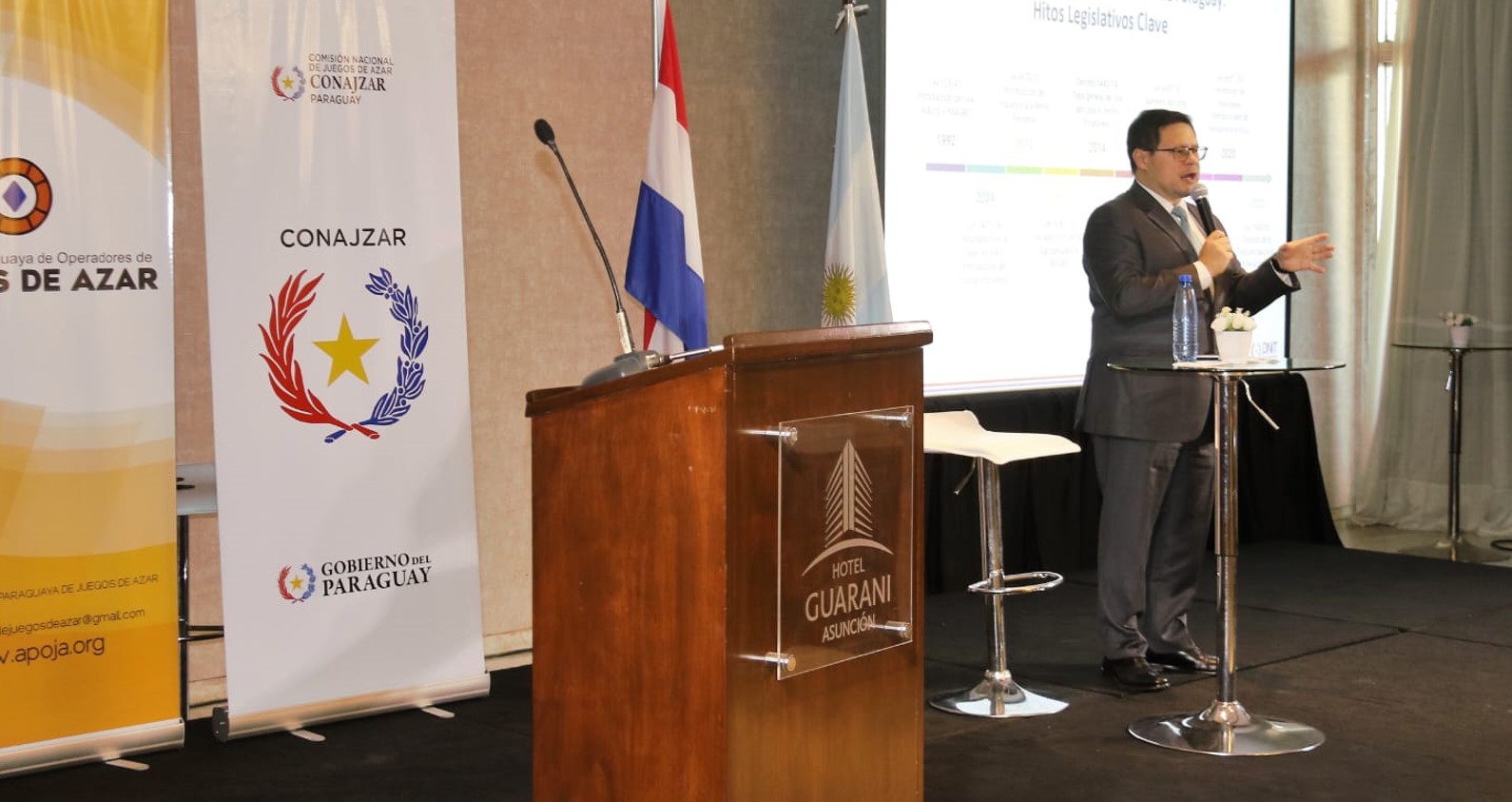 El Titular de la Dirección Nacional de Ingresos Tributarios (DNIT), Óscar Orué expuso en la Segunda Edición de G&M Eventos Paraguay, un encuentro clave para operadores de juegos presenciales y en línea de Latinoamérica. También asistieron representantes de industrias vinculadas al sector.