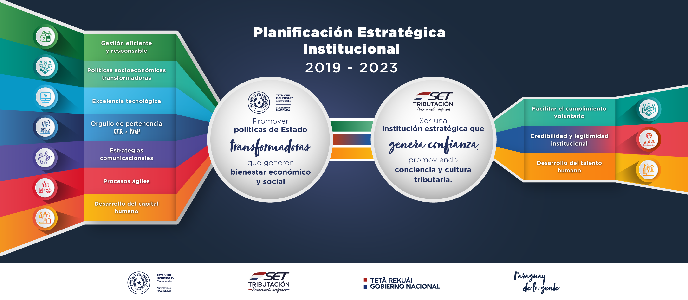 El Plan Estratégico, ha sido pensado, analizado y debatido por un gran número de funcionarios de la SET, hombres y mujeres que cotidianamente aportan su trabajo y ponen su mayor empeño y compromiso para construir el nuevo Paraguay que soñamos, por lo que afirmamos que el mismo integra la concepción y las ideas de lo que queremos y entendemos que debe ser nuestra Institución, para asegurar el cumplimiento eficiente de la misión que la Ley nos impone como ente recaudador de los principales recursos que el Estado requiere para cumplir sus fines y responder a las necesidades de la ciudadanía.