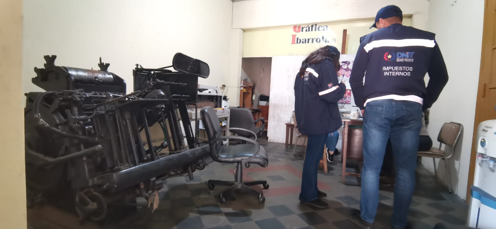 Durante la primera quincena de junio, se efectuaron también controles a imprentas habilitadas para la impresión de comprobantes de venta en las ciudades de Asunción, San Lorenzo y Ñemby (Departamento Central). En estos procedimientos se verificaron los datos declarados en el Registro Único del Contribuyente (RUC), la habilitación de las imprentas, la existencia y funcionamiento de maquinarias y numeradoras, y el uso correcto de comprobantes.