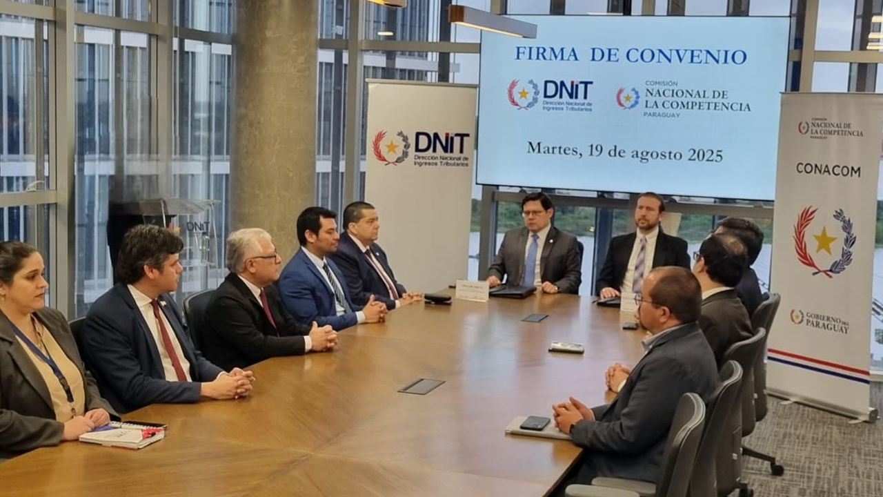 La Dirección Nacional de Ingresos Tributarios (DNIT) y la Comisión Nacional de la Competencia (CONACOM) firmaron este martes 19 de agosto un convenio de cooperación interinstitucional. El acuerdo busca establecer un marco de coordinación entre ambas instituciones, con el fin de lograr una labor más eficiente y efectiva en el desarrollo y aplicación de políticas y procedimientos que faciliten el intercambio de información y el control del cumplimiento de las obligaciones.